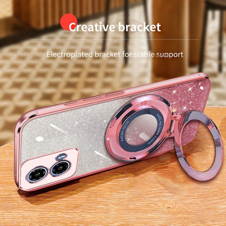Funda de TPU con Soporte Redondo y Purpurina Degradada para Motorola Moto G34 (Morado)