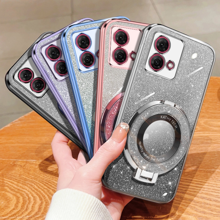 Funda de TPU con Soporte Redondo y Purpurina Degradada para Motorola Moto G84 (Morado)