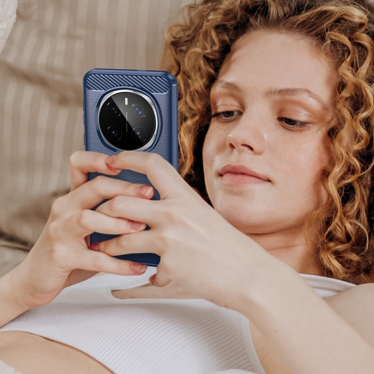 Funda de TPU para Honor Magic7 Pro con Textura Cepillada de Fibra de Carbono (Azul)