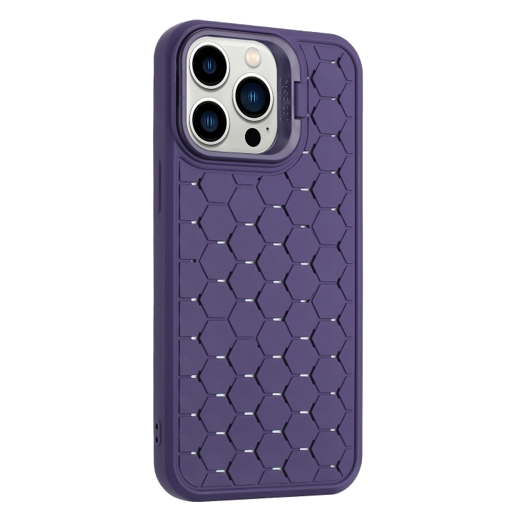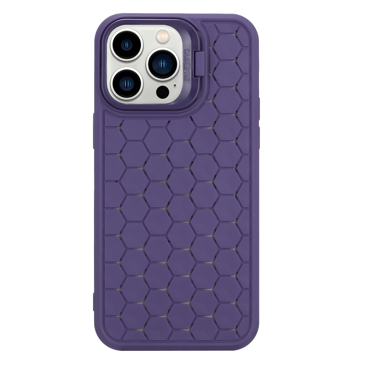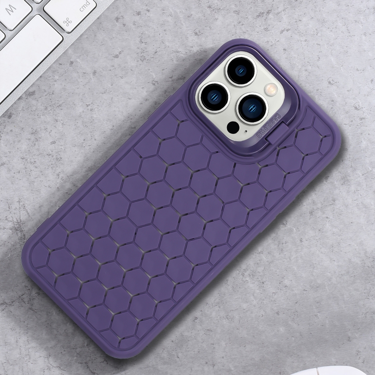 Funda TPU con Soporte para Lente Radiante de Panal para iPhone 16 Pro Max (Morado)