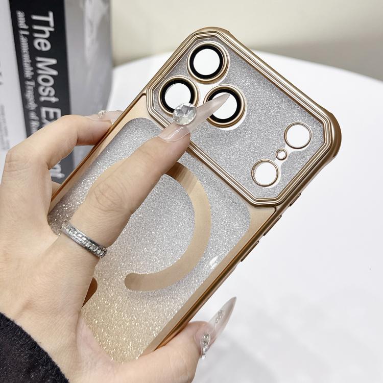 Funda de TPU MagSafe con ventana grande, brillo degradado, mate, galvanizada, para iPhone 17 Pro Max (dorada)