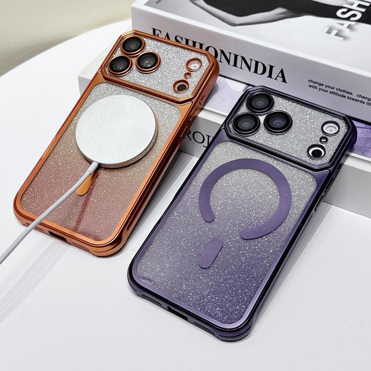 Funda de TPU MagSafe con ventana grande, brillo degradado, mate, galvanizada, para iPhone 17 Pro Max (naranja)