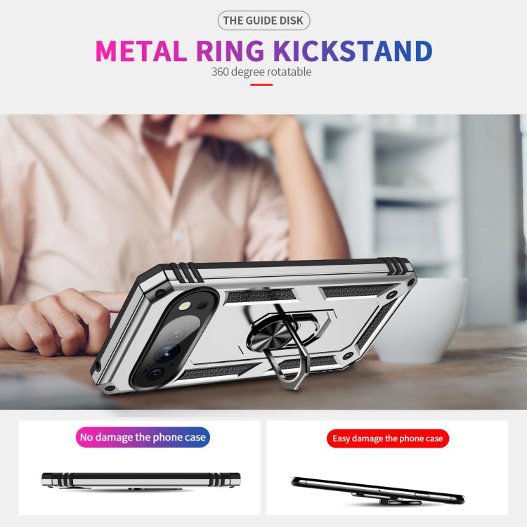 Funda TPU + PC para Google Pixel 10 con Soporte a Prueba de Golpes (Plateada)