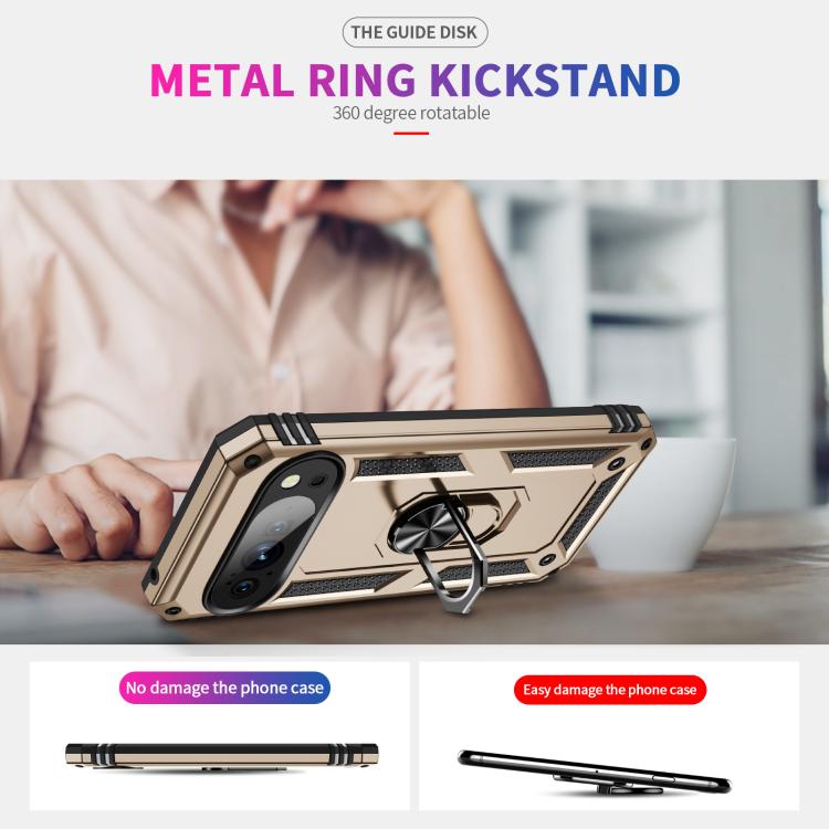 Funda TPU + PC para Google Pixel 10 Pro a Prueba de Golpes con Soporte (Dorada)