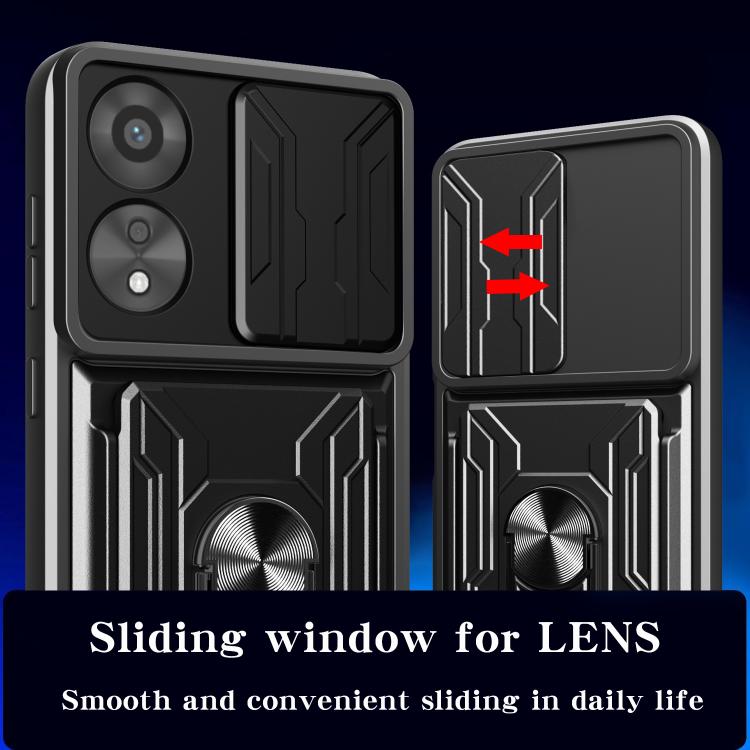 Funda Deslizante de TPU y PC con Ranura para Tarjetas para Oppo A78 4G (Azul)