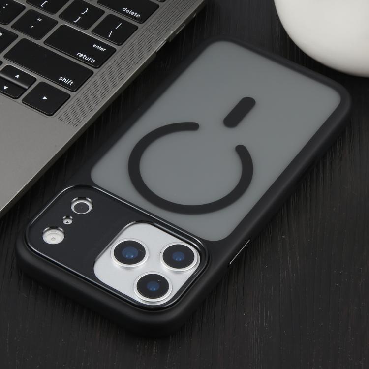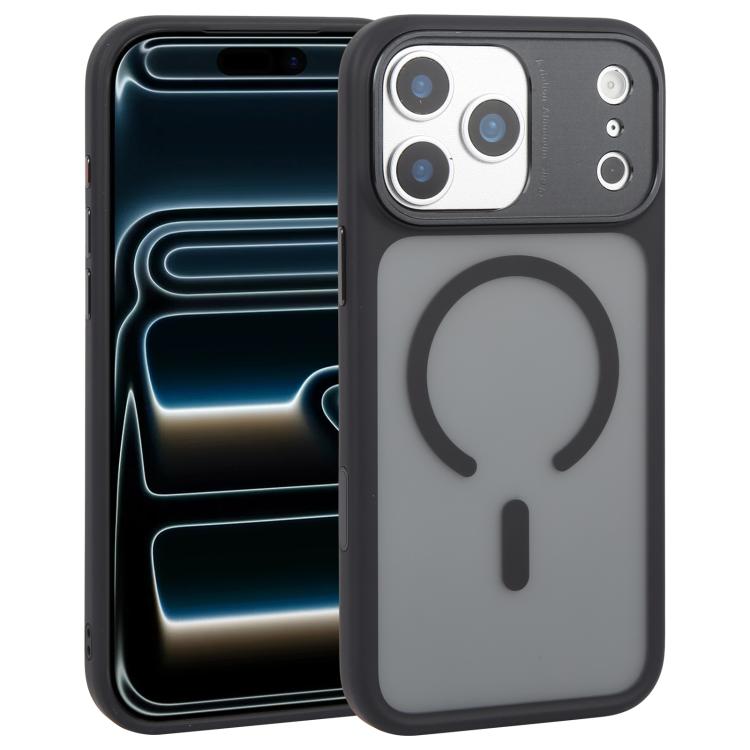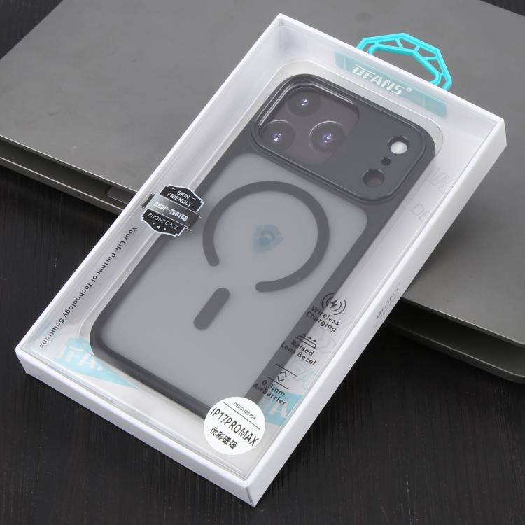 Funda DFANS DESIGN con marco de metal, textura de cuero, esmerilado y Magsafe para iPhone 17 Pro Max (negra)