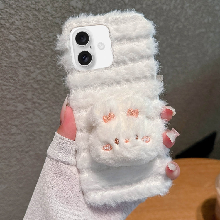 Funda híbrida Poliuretano Termoplástico con diseño de muñeco de peluche para iPhone 16 (Blanca)