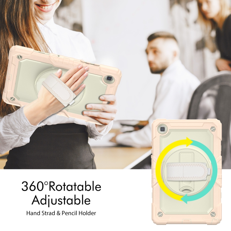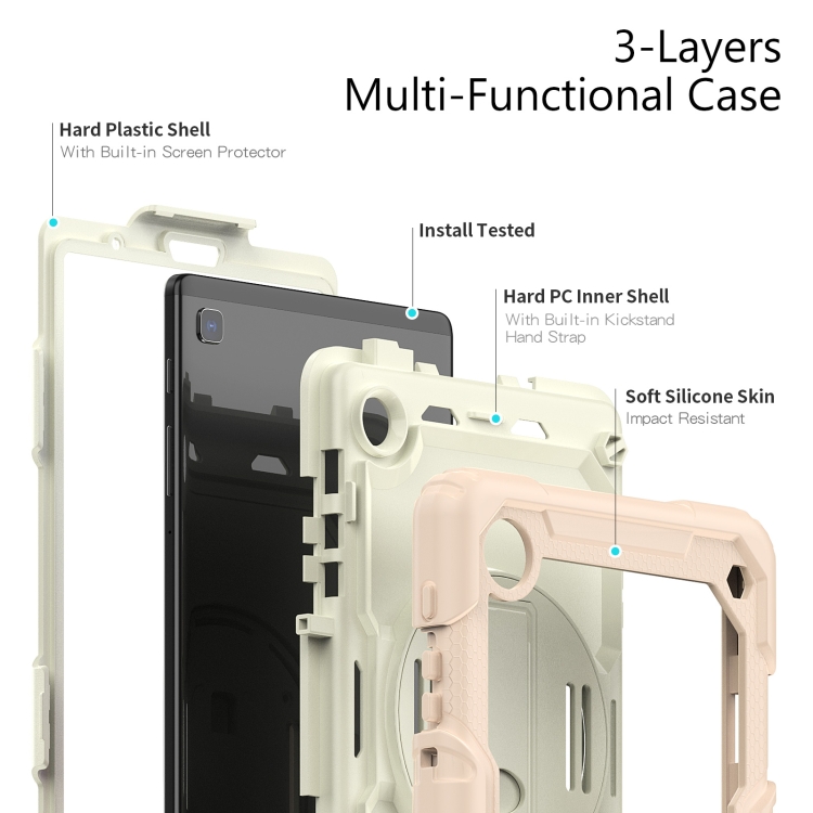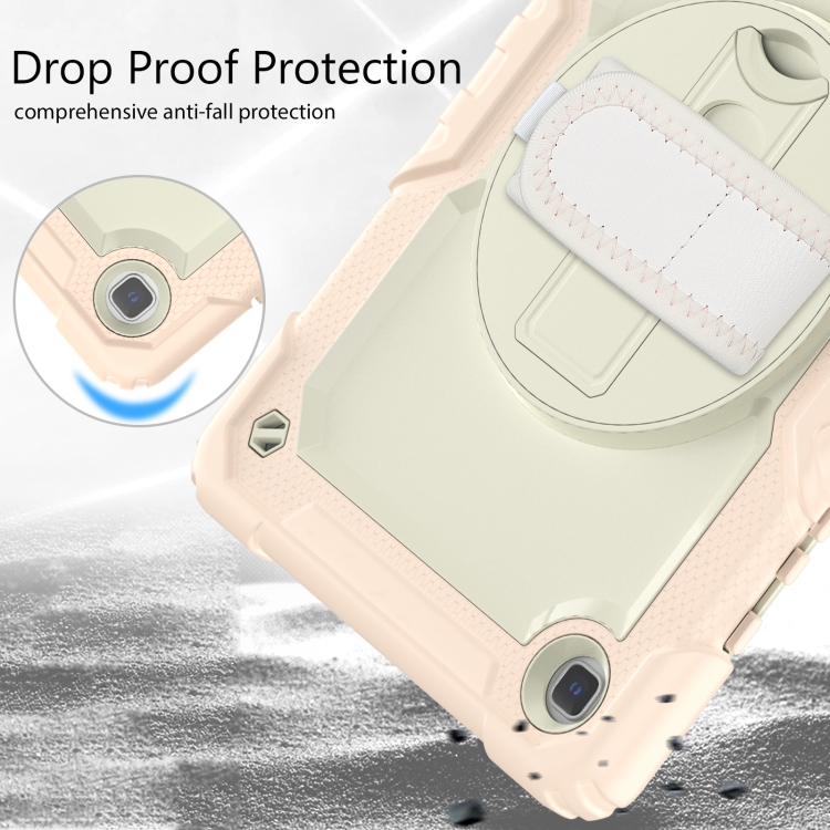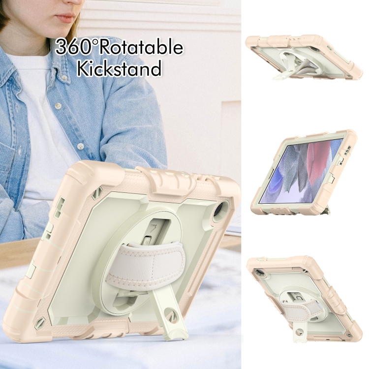 Funda híbrida de silicona para Tablet Samsung Galaxy Tab A7 Lite T220 con correa para el hombro (Beige y Oro Rosa)