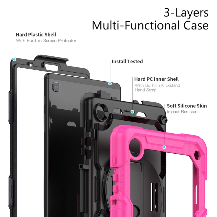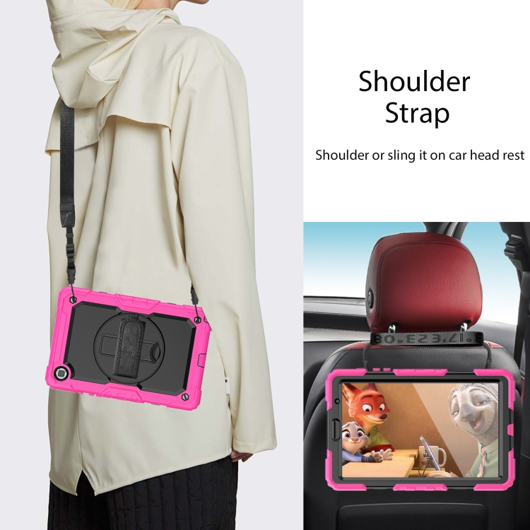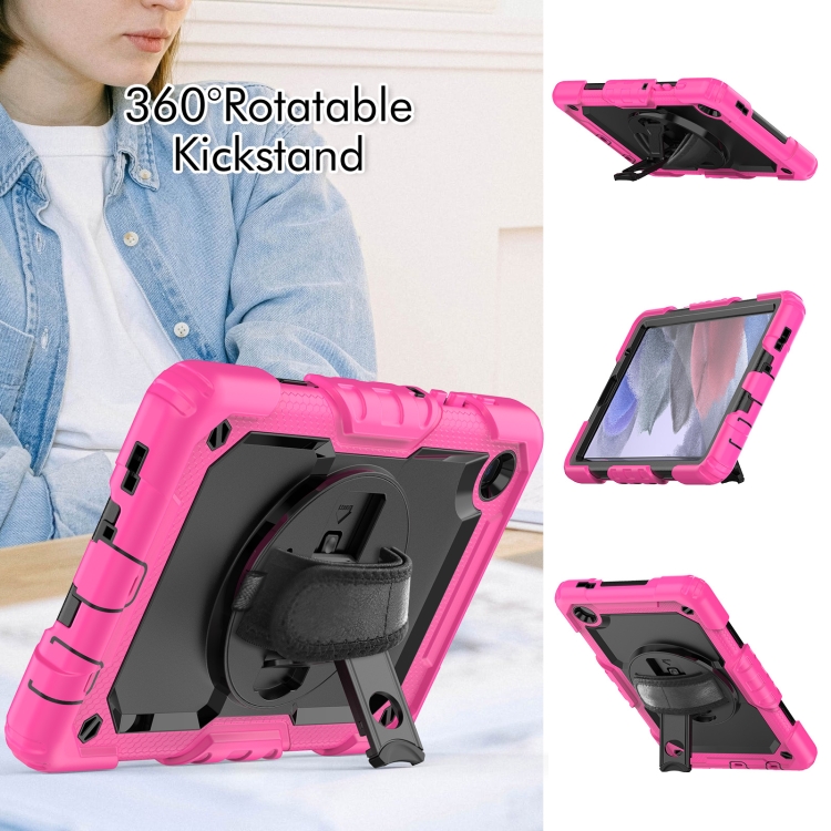 Funda híbrida de silicona para Tablet Samsung Galaxy Tab A7 Lite T220 con correa para el hombro (Negro + Rojo Rosa)