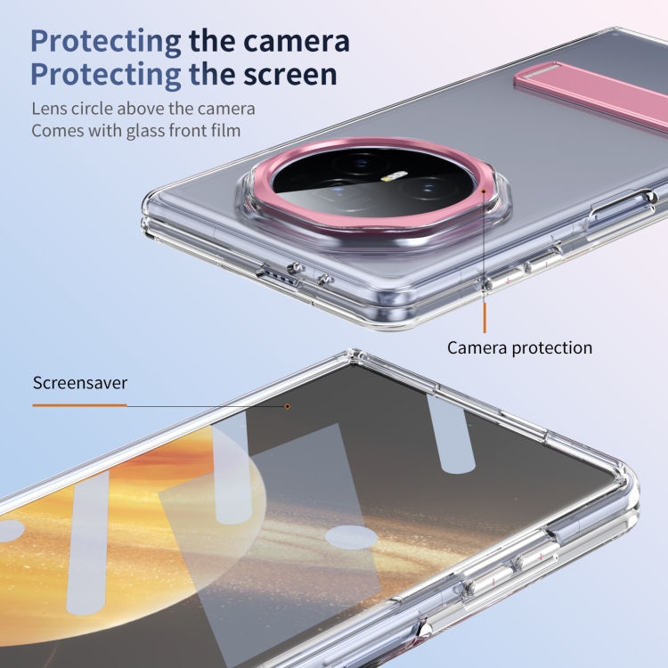 Funda híbrida TPU para PC con soporte para hielo Honor Magic V3 (Rosa)