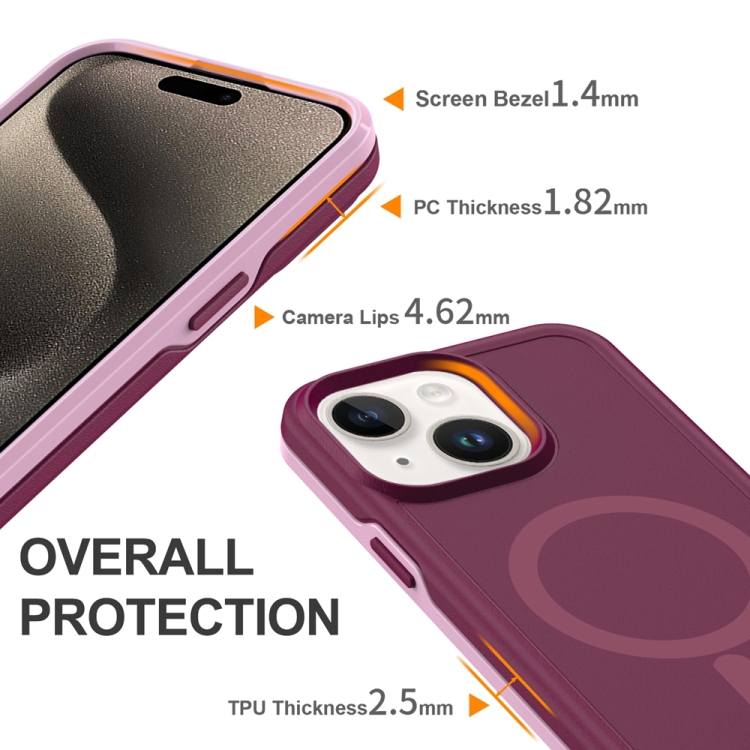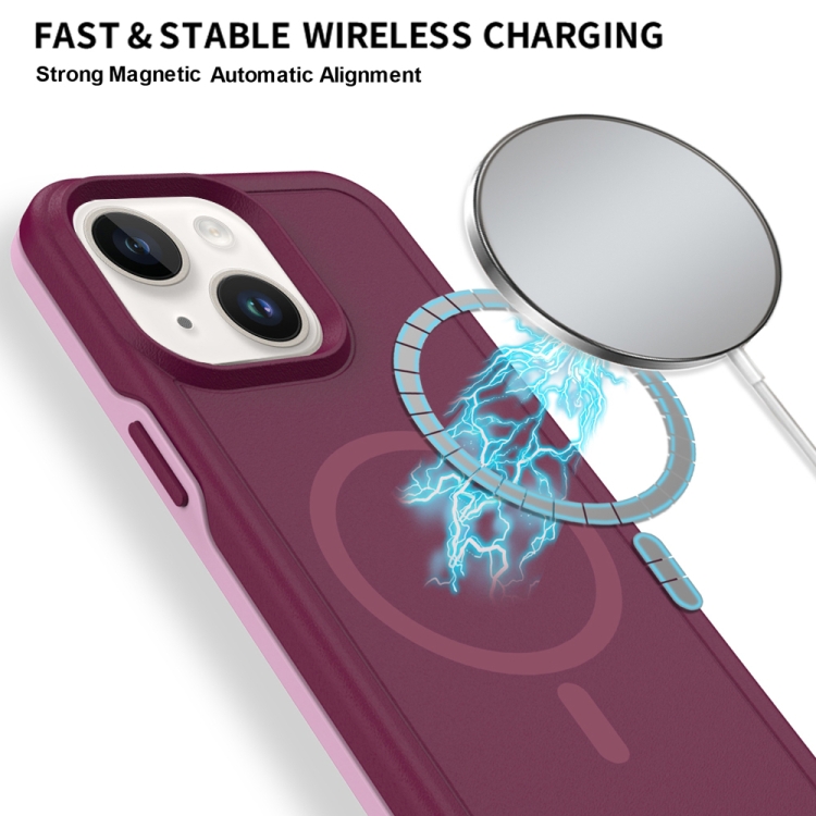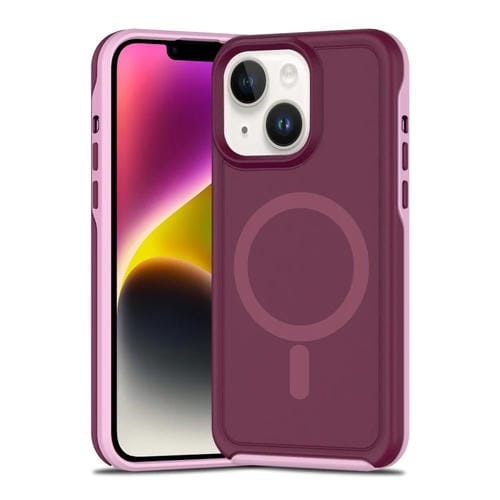 Funda híbrida TPU y PC iPhone 14 Plus protección Magsafe a prueba de golpes (Rojo Vino y Rosa Claro)