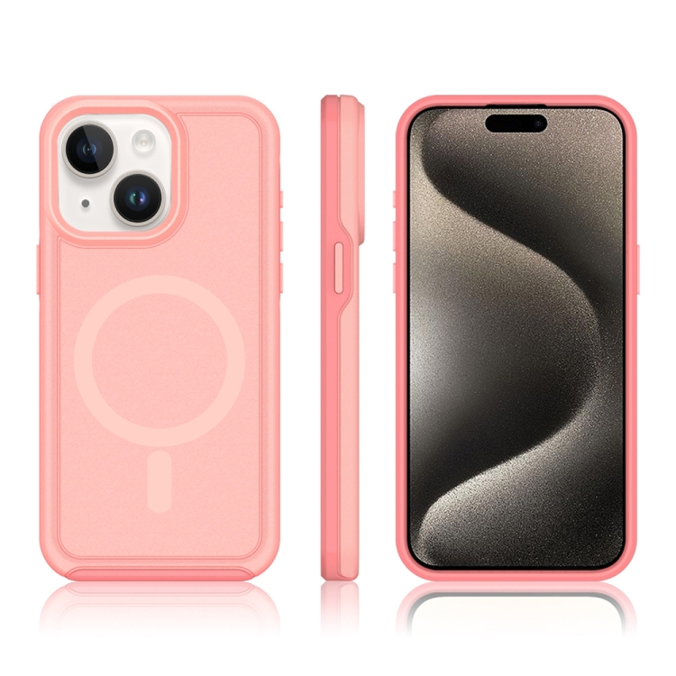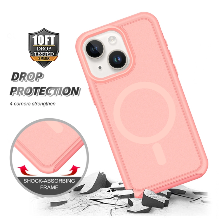Funda híbrida TPU y PC iPhone 14 Plus Protección Magsafe a prueba de golpes (Rosa Claro y Rojo Coral)