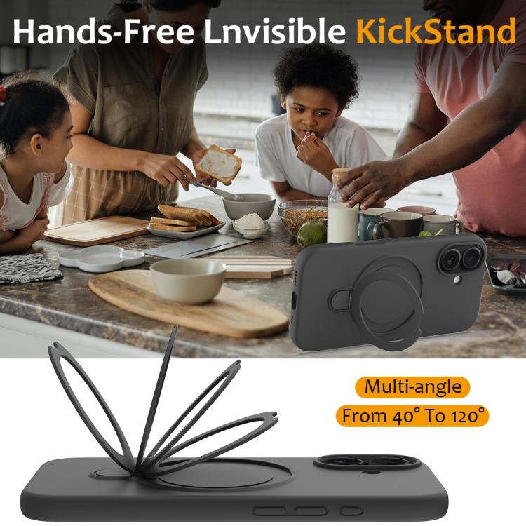 Funda magnética MagSafe de silicona líquida para iPhone 17 con soporte de anillo (negro carbón)