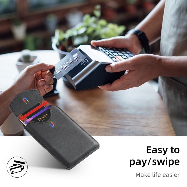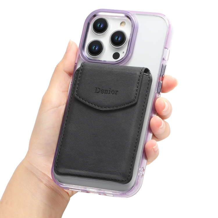 Funda magnética para teléfono Denior V12 Magsafe de PU para tarjetas (Negra)