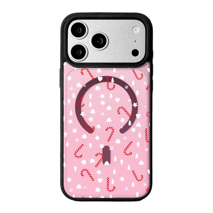 Funda magnética resistente con borde negro pintado de la serie navideña para iPhone 17 Pro (rosa dulce semitransparente)