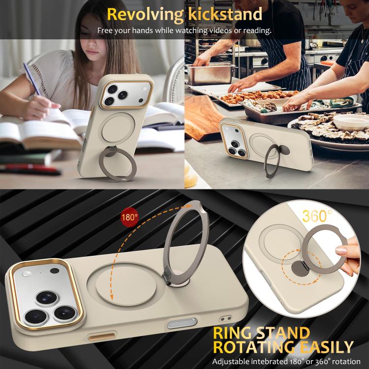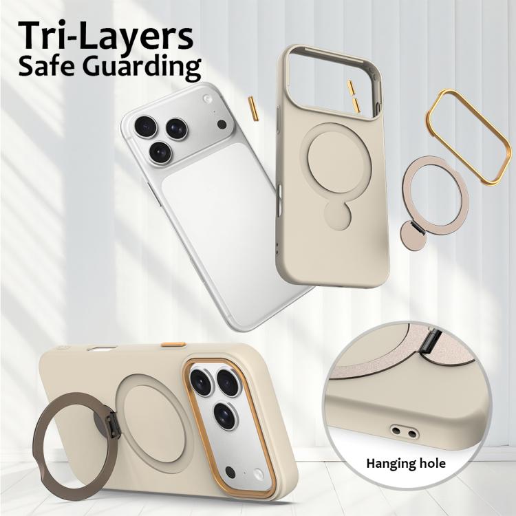 Funda MagSafe híbrida TPU PC con soporte de anillo pivotante para iPhone 17 Pro Gen1.5 (albaricoque)