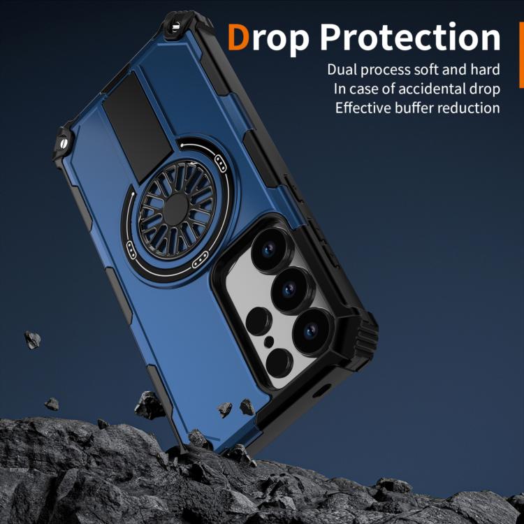 Funda MagSafe para Samsung Galaxy S25 Ultra 5G, a prueba de golpes, con soporte metálico y eje (azul)