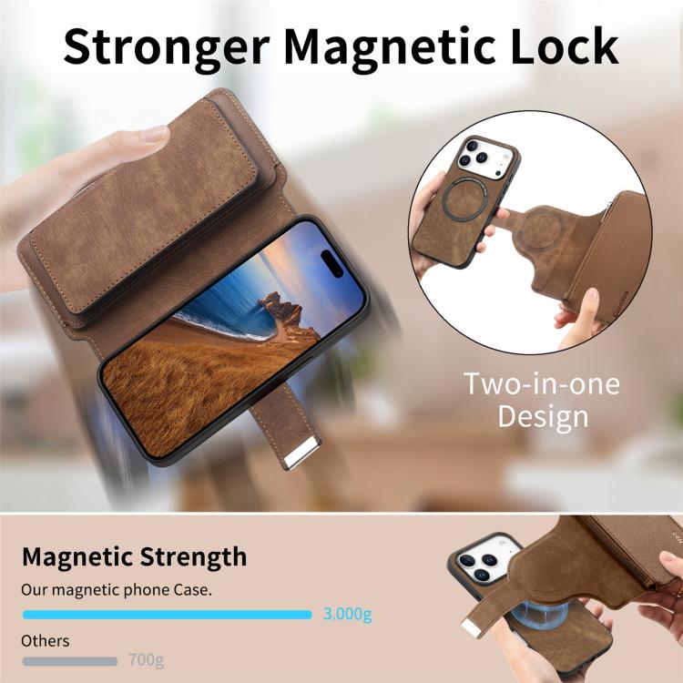 Funda Neo MagSafe RFID antirrobo con cremallera para iPhone 17 Pro, estilo retro, de cuero (marrón)