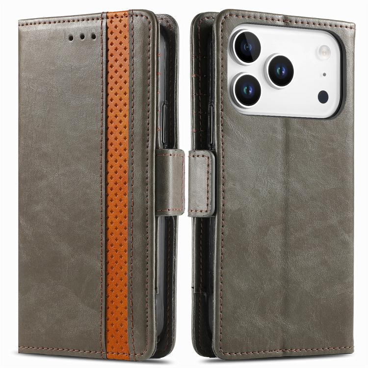 Funda Neo Splicing de cuero con doble hebilla magnética para iPhone 17 Pro (gris)