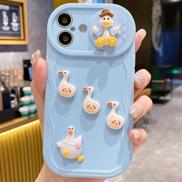 Funda para iPhone 16 Diseño Creativo Pato 3D Ventana Deslizante Cobertura Total (Azul)