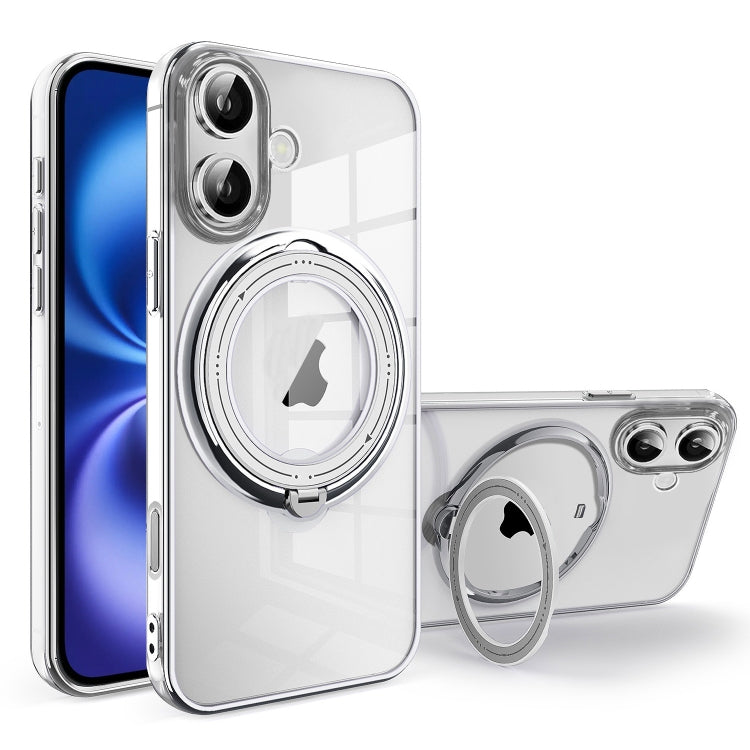 Funda para iPhone 16 con Soporte Giratorio 360 Grados y Galvanoplastia Magsafe (Plateada)