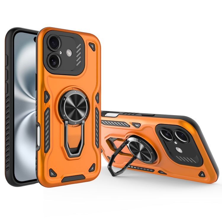 Funda para iPhone 16 con Soporte Giratorio de Metal y Carcasa Magnética de TPU y PC (Naranja)