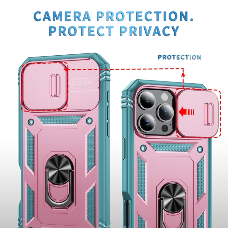 Funda para iPhone 16 Pro Max TPU + PC con Soporte Deslizante (Rosa y Verde)
