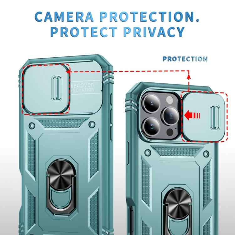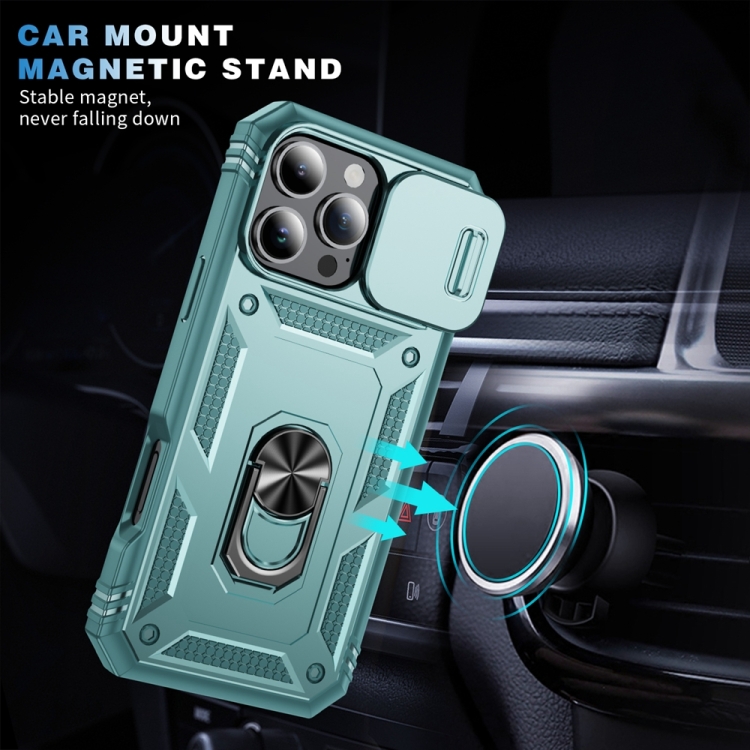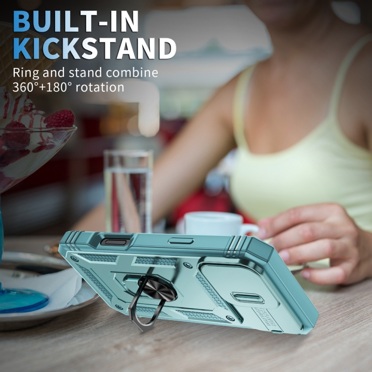 Funda para iPhone 16 Pro Max soporte deslizante TPU + PC (Verde)