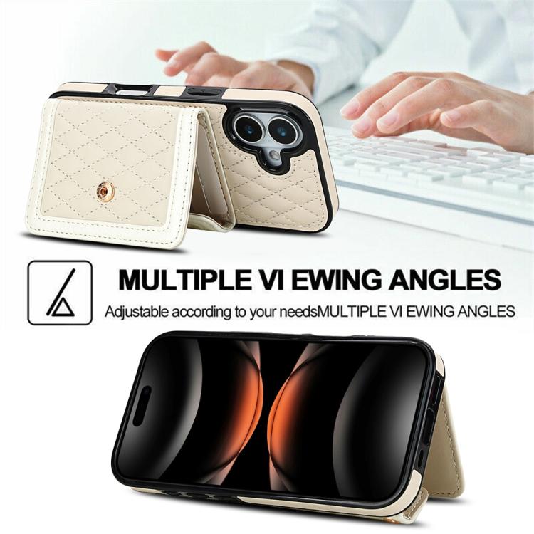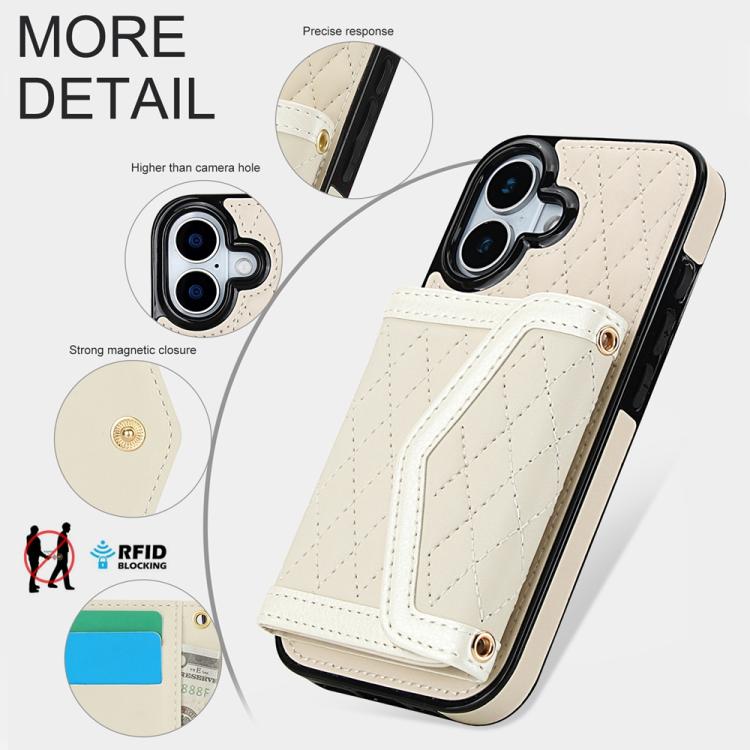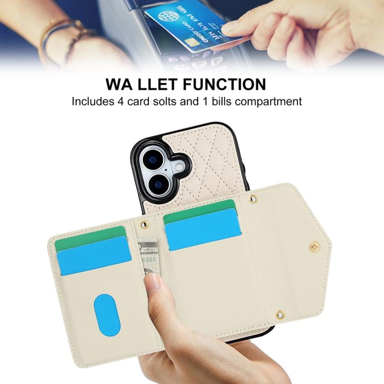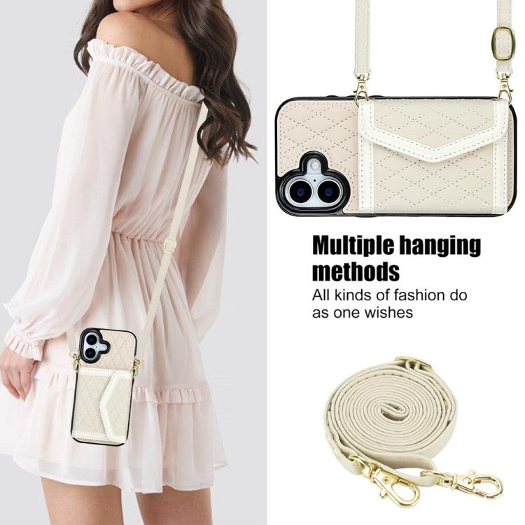 Funda para iPhone 17 con textura rómbica y cordón largo (beige)
