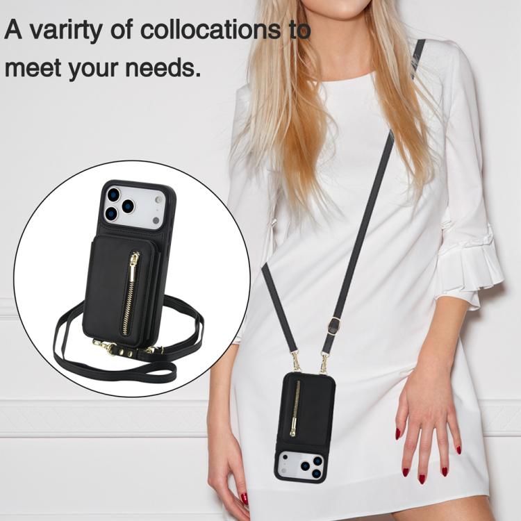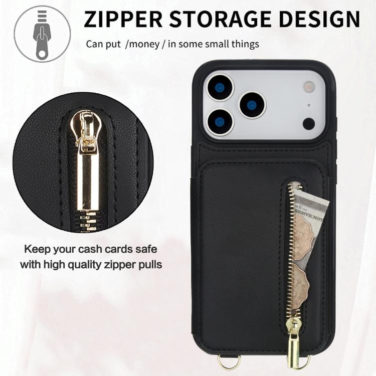 Funda para iPhone 17 Pro Max YM006 con cremallera y doble cordón (negra)