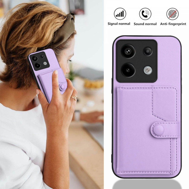 Funda para Teléfono Antirrobo con Botón y Tarjeta Rfid para Redmi Note 13 Pro 5G (Morado)