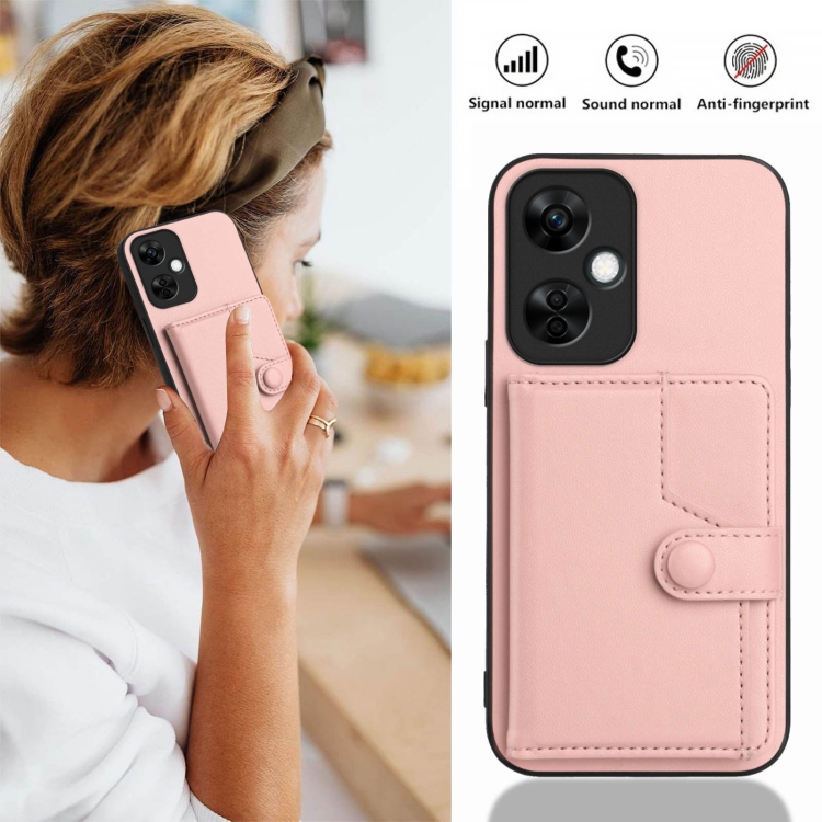 Funda para Teléfono Antirrobo OnePlus Nord CE 3 Lite con Botón y Tarjetero RFID (Rosa)