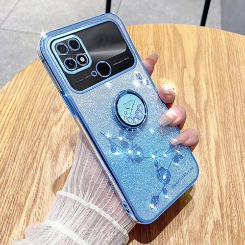 Funda para Teléfono con Anillo de Flores Inmortal con Purpurina Degradada para Xiaomi Poco C40 4G, Todo Incluido (Azul)