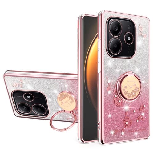 Funda para Teléfono con Anillo de Flores Inmortales con Purpurina Degradada para Xiaomi Redmi Note 14 5G, Todo Incluido (Rosa)