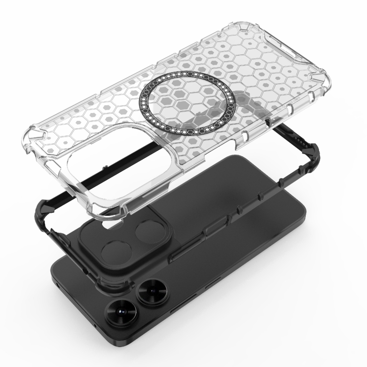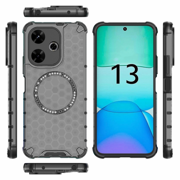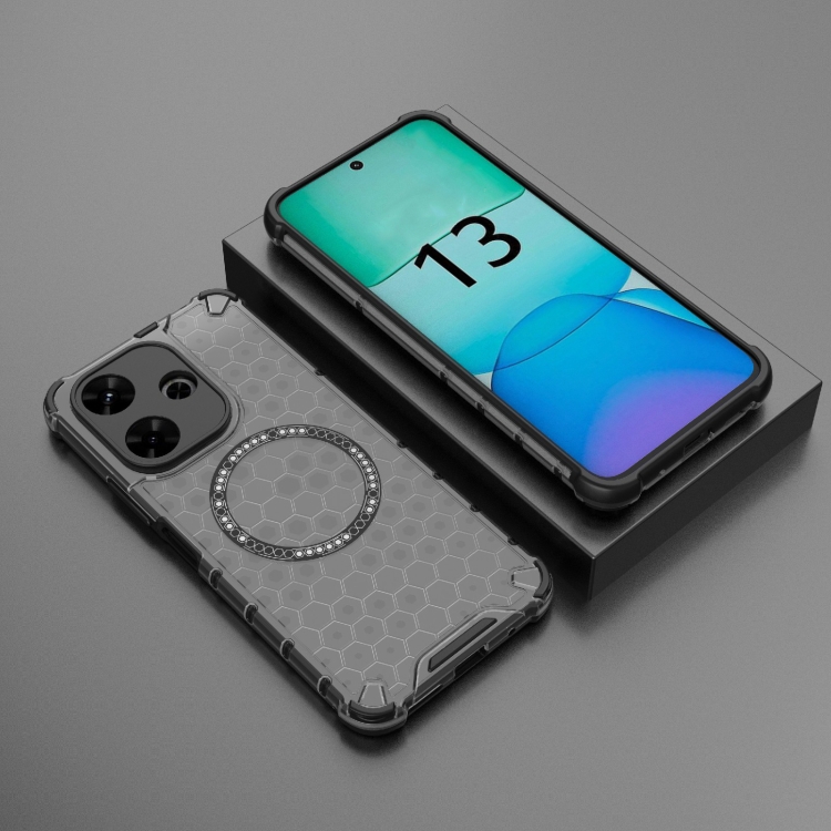 Funda para Teléfono con Anillo Magnético a Prueba de Golpes con Diseño de Panal de Abeja para Redmi 13 4G (Negro)