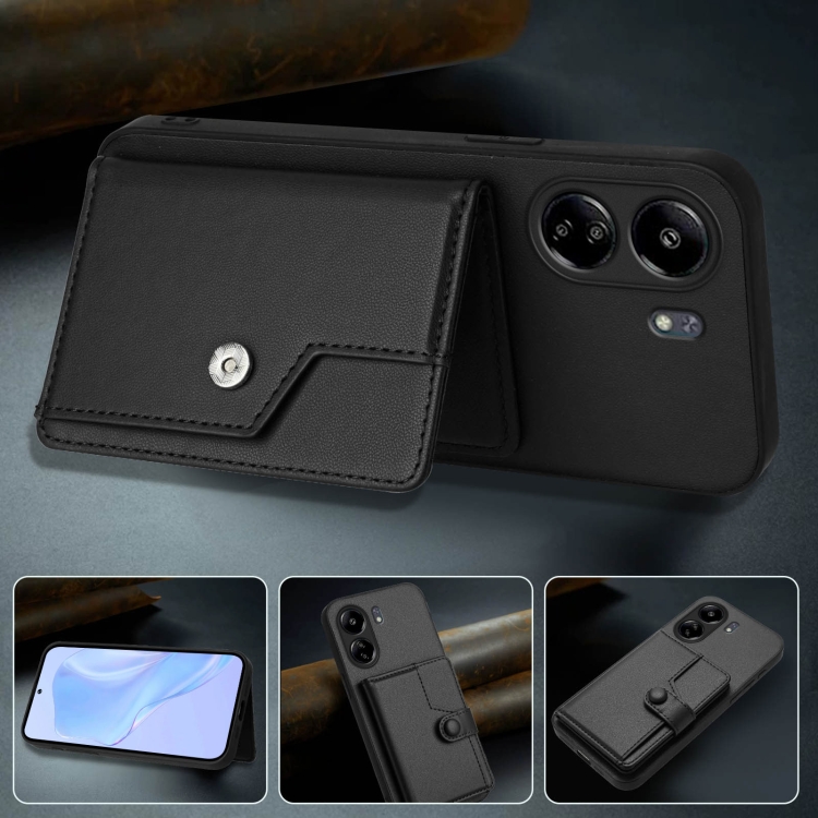 Funda para Teléfono con Botón y Tarjeta Rfid Antirrobo para Redmi 13C 4G Global (Negra)