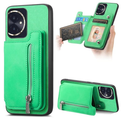 Funda para Teléfono Honor 100 con Cremallera Magsafe Retro TaRJetero Cartera (Verde)