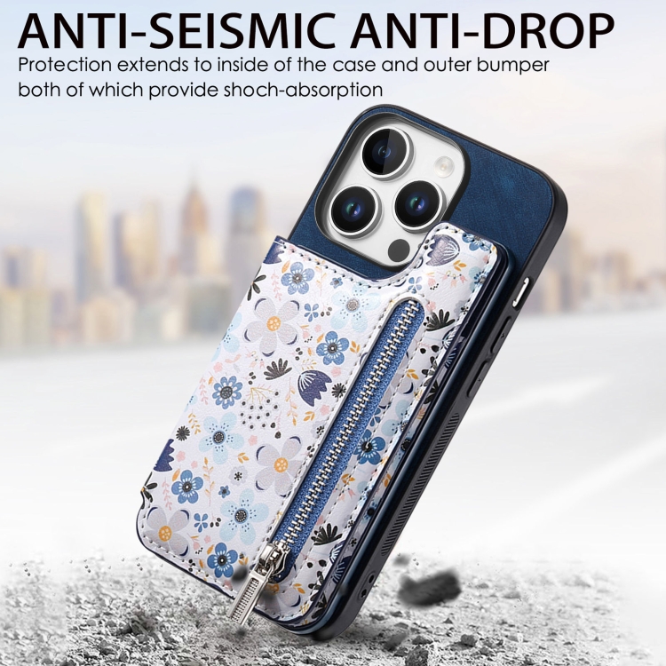 Funda para Teléfono iPhone 16 Pro Max con Cremallera Trasera Pintada Retro (Azul)
