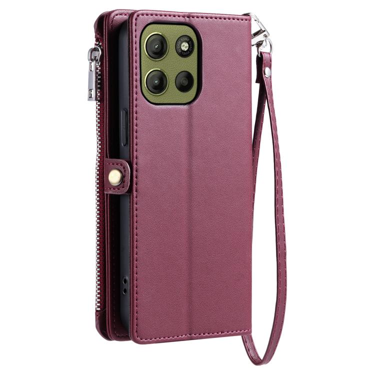 Funda para Teléfono Motorola Moto G15 con Cremallera y Ranura para Tarjetas (Rojo Vino)