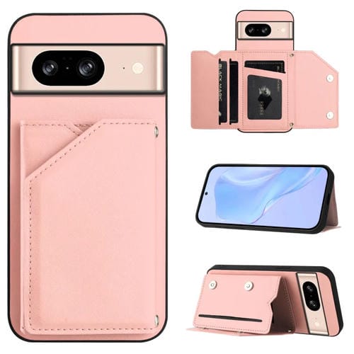 Funda para Teléfono Google Pixel 8 Skin Feel con 4 Ranuras para Tarjetas y Correa para Muñeca (Rosa)