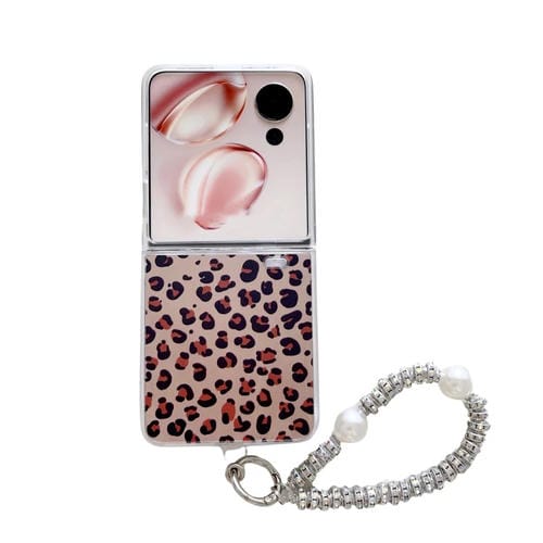 Funda para Teléfono Honor Magic V con Diseño Leopardo y Plumas, Tapa y Brazalete Integrado (Marrón)