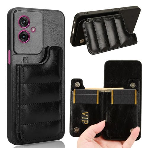 Funda para Teléfono Motorola Moto G55 5G con Diseño de Vaca y Tarjeta de Costura (Negra)