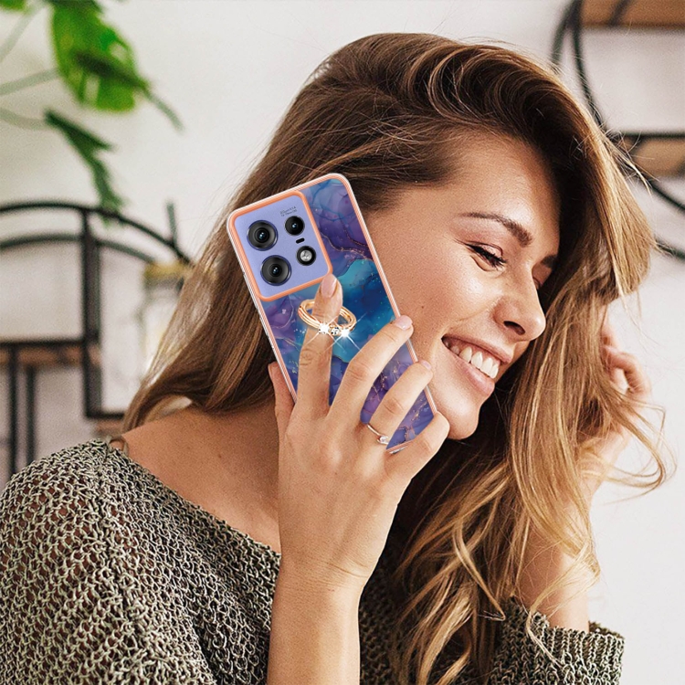 Funda para Teléfono Motorola Edge 50 Pro con IMD Doble Cara y Galvanoplastia Mármol (Púrpura)