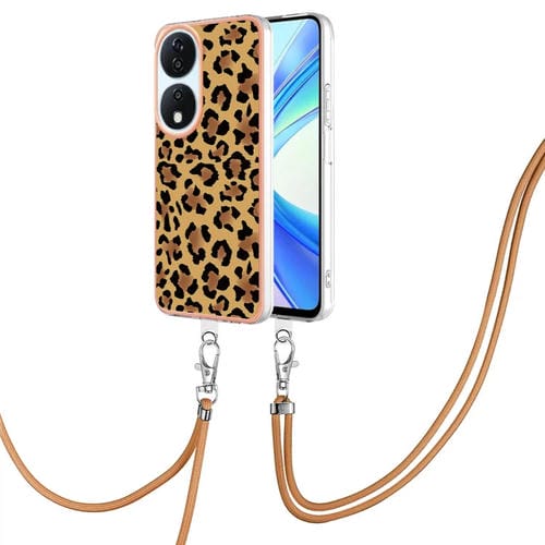 Funda para Teléfono Honor X7B 4G/5G con IMD Doble Cara Galvanizada y Cordón (Leopardo)