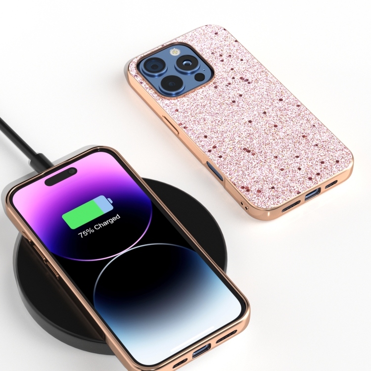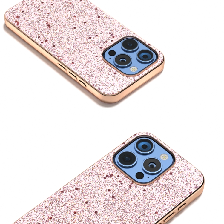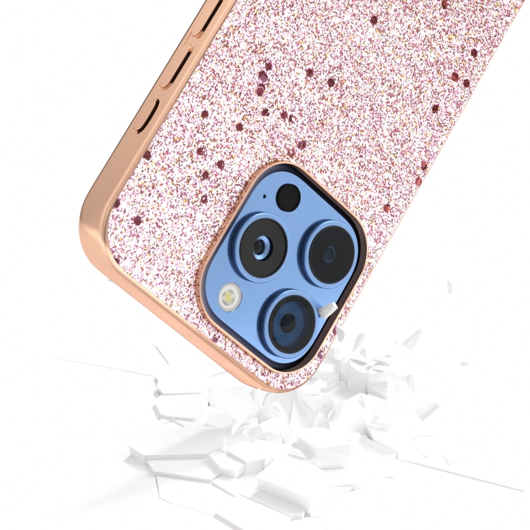 Funda para Teléfono iPhone 16 Pro Max Marco Galvanizado Purpurina a Prueba de Golpes (Dorado y Rosa)