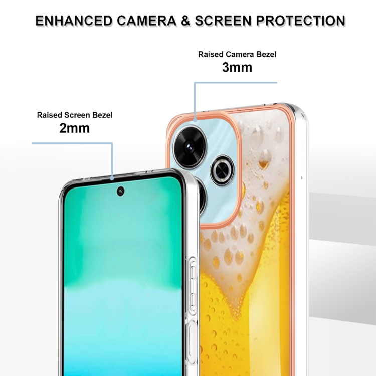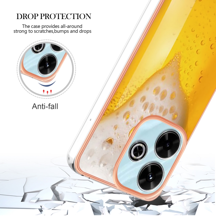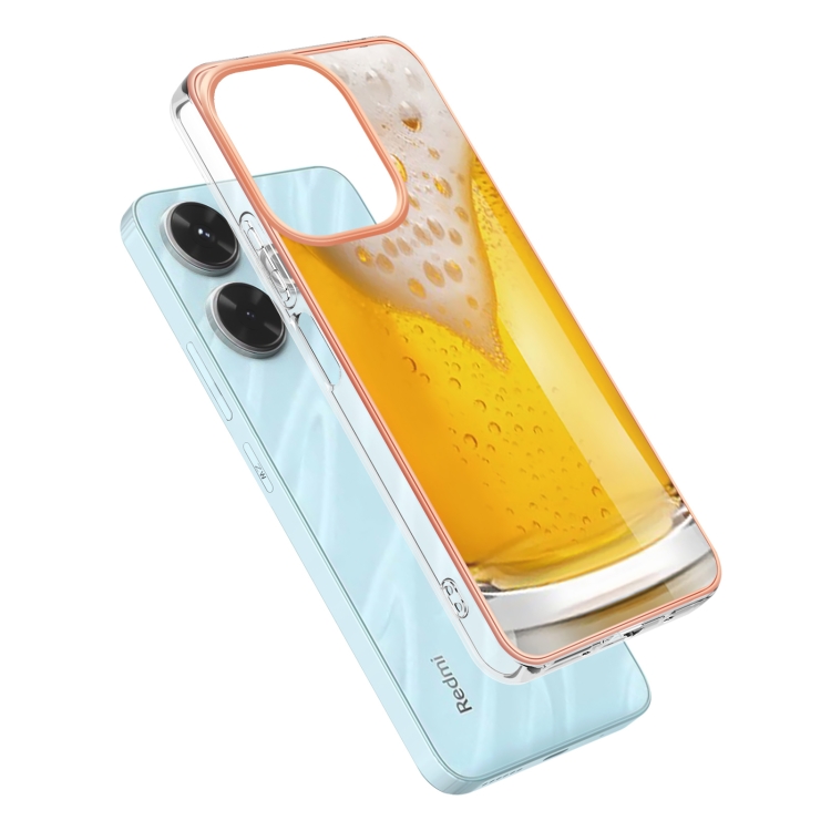 Funda para Teléfono con Revestimiento Electrolítico de Mármol de Doble Cara Imd para Redmi 13 4G (Cerveza de Barril)