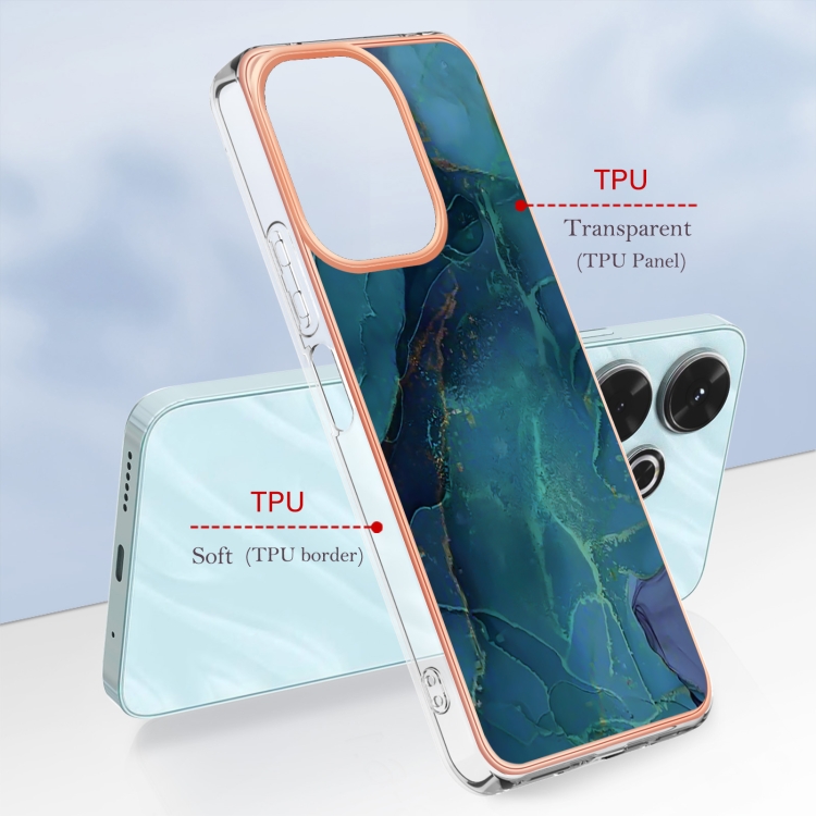 Funda para Teléfono con Revestimiento Electrolítico de Mármol de Doble Cara Imd para Redmi 13 4G (Verde 017)