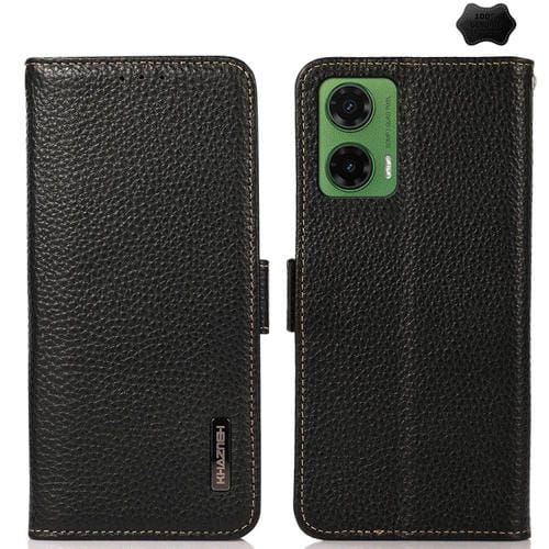 Funda para Teléfono Khazneh Cuero Genuino con Rfid e Imán Lateral para Motorola Moto G35 (Negro)