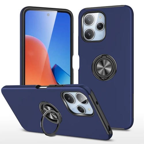 Funda para Teléfono con Soporte de Anillo Magnético Híbrido de TPU para Redmi 12 4G PC (Azul Marino)