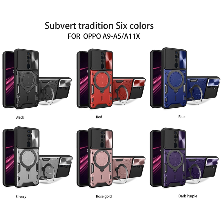 Funda para Teléfono con Soporte Magnético Deslizante con Textura de Cd para Oppo A9 2020/A5 2020/A11X (Azul)